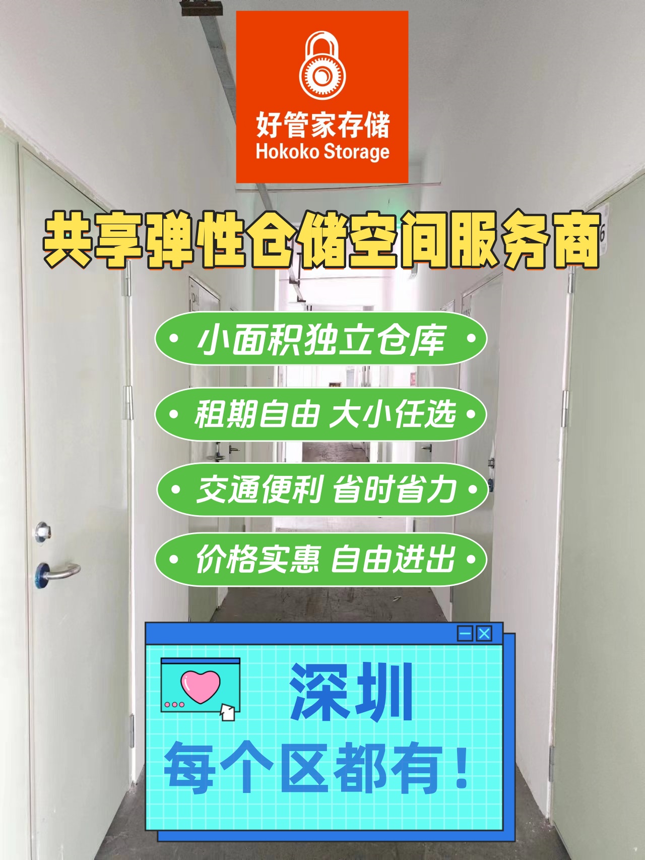 好管家存储仓常年提供深圳区域的10—60平方米的独立仓储空间租赁服务,仓库租期自由,面积任选,仓库提供免费网络,24小时可自由进出,是初创型和创意型中小微企业用仓的首选品牌。我们热烈的欢迎深圳地区的产品打磨阶段的微企,创意型网商和零售业分销客户使用我们的仓库,你们可就近使用我们的仓库来进行产品研发,设计,基础产品的存货,发货等。我们也热烈欢迎电商网货客户就近使用我们的仓库,用我们仓库来存货,理货,发货。我们更欢迎周边的商家使用我们的仓库作为您的备货,大促囤货和中转货物使用。